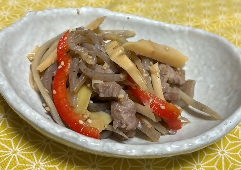たけのこ水煮、ごぼう、こんにゃくなど、様々な食材を組み合わせているので、味や食感を意識して噛んで食べることができる料理です。そのままでも、ごはんにの...