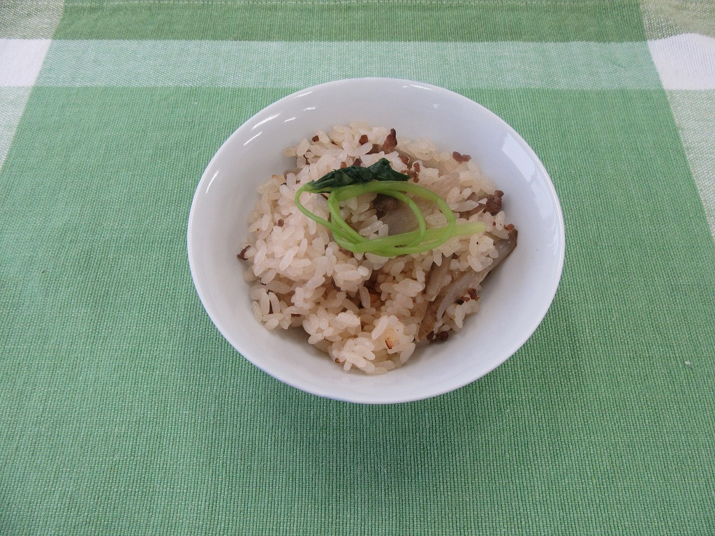 【4】炊飯し、炊きあがりに三葉を入れる。
