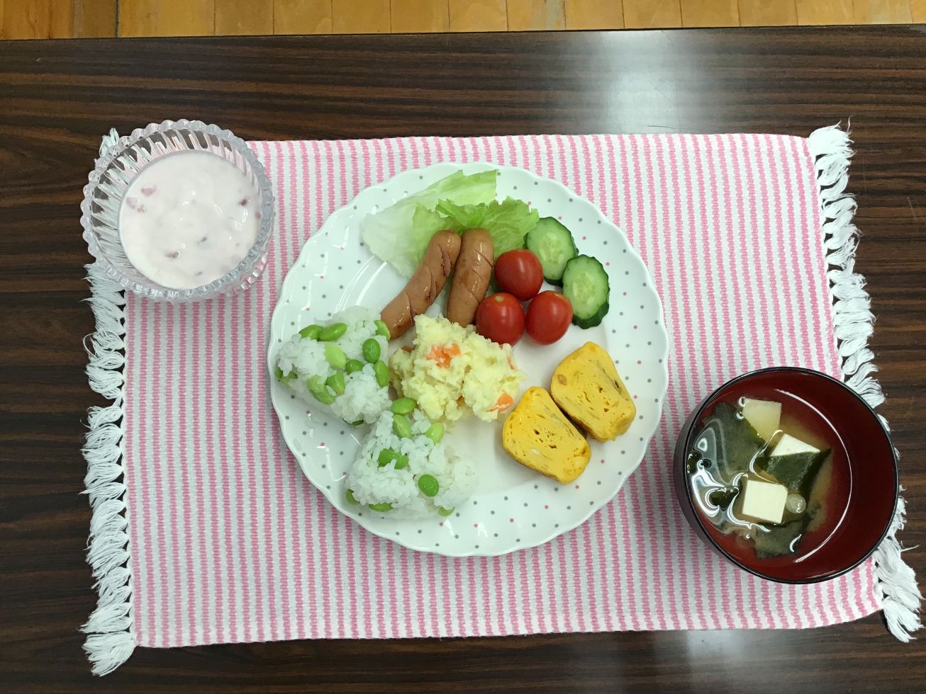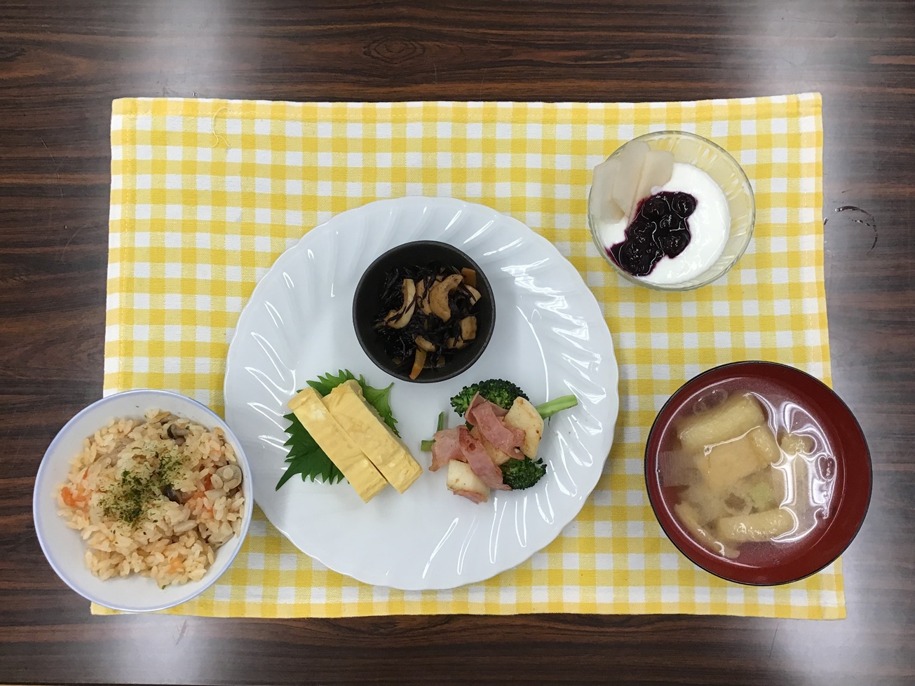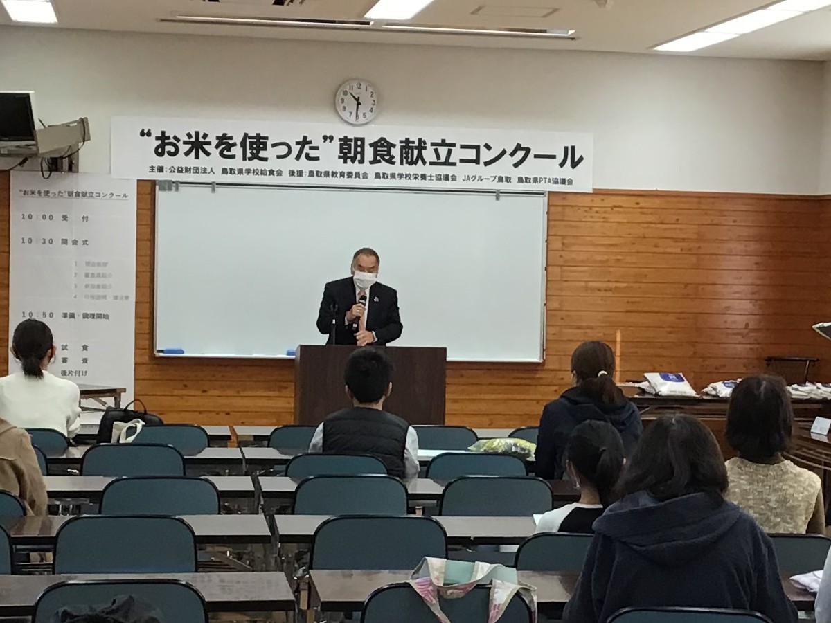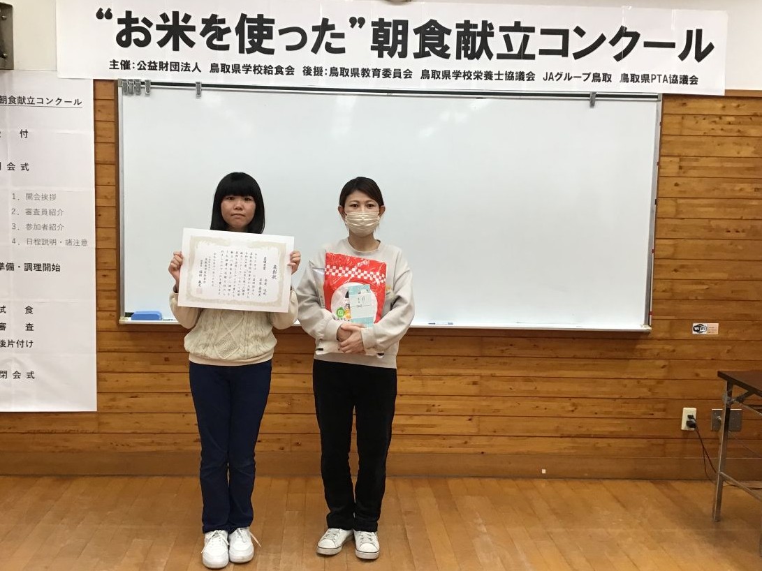 朝食献立コンクール 令和7年度お米を使った朝食献立コンクール開催報告(2025年度) 2026.02.04 『❝お米を使った❞朝食献立コンクール』 令和7年11月29日(土)開催 主催:公益財団法人鳥取県学校給食会 後援:鳥取県教育委員会・鳥取県学校栄養士協議会・JAグループ鳥取・鳥取県PTA協議会 倉吉市の伯耆しあわせの郷にて、令和7年度“お米を使った”朝食献立コンクールを開催しました。このコンクールは、毎年、応募対象者を鳥取県内の小中学校の児童・生徒とし、栄養バランスや朝食にふさわしい献立であることなどの条件をおいて、夏休みの期間に参加募集を行っています。本年は、昨年を上回る181組もの応募をいただき、その中から書類審査を経て選考された6組がコンクールの献立調理審査へ出場となりました。 東部の鳥取市から西部の米子市・境港市まで様々な地域から出場した6組が調理を行い、6名の審査員に栄養バランス、協力性、色彩、味付け、地場産物の活用、盛り付け、調理の手際等の審査をしていただきました。 フォトギャラリー 各チームの献立作品紹介 最優秀賞 鳥取の栄養満点朝ご飯 米子市立美保中学校 安達咲妃(中1)安達真由美(保護者) 【献立】 トマトの炊きこみご飯・白葱とあげの味噌汁・出汁巻き卵・とうふちくわとひじきの煮物・ブロッコリーと長芋のベーコン炒め・梨とヨーグルト ブルーベリージャムがけ 詳しくはこちら 優秀賞 地場産物 元気朝ご飯 鳥取市立醇風小学校 岩﨑琉杏(小6)岩﨑梨菜(保護者) 【献立】 白米・しいたけと豆ふのみそ汁・オクラと長いものおかか和え・かぼちゃ煮・たまご焼き・サケの塩焼き・のり・ヨーグルト(ブルーベリー) 詳しくはこちら 優秀賞 野菜たっぷり朝ご飯 境港市立第三中学校 渡邉桧俐(中1)渡邉早織(保護者) 【献立】 ブリと大葉のおにぎり・かぼちゃのみそしる・おくらのおかかあえ・ピーマンとちくわのきんぴら・なし・玉子やき 詳しくはこちら 優良賞 星取県キラキラ朝ご飯 米子市日吉津村中学校組合立箕蚊屋中学校 大前優愛(中3)大前由美子(保護者) 【献立】 地元産野菜たっぷりの朝ご飯 詳しくはこちら 優良賞 自然あふれる鳥取県の朝食 鳥取市立久松小学校 山本望結(小5)山本裕子(保護者) 【献立】 鳥取3食そぼろごはん・湖山池のしじみ汁・たまご焼き・自家製らっきょうと野菜のあえ物・家でとれたブルーベリーのヨーグルト 詳しくはこちら 優良賞 気分も調子もよくなるおはよう!朝ごはん 米子市日吉津村中学校組合立箕蚊屋中学校 岩本彩花(中3)高田萌花(中3) 【献立】 えだ豆おにぎり・みそ汁・たまご焼き・ポテトサラダ・ウインナー・きゅうりのつけもの・ヨーグルト 詳しくはこちら 鳥取県学校給食会だより【令和8年1月号】
