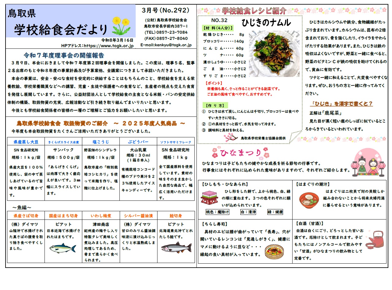 3. 鳥取県学校給食会だより【令和8年3月号】